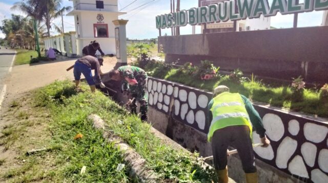 Wujudkan Lingkungan Sehat, Personil Koramil 03/Maritengngae Gelar Karya Bakti Bersih-bersih