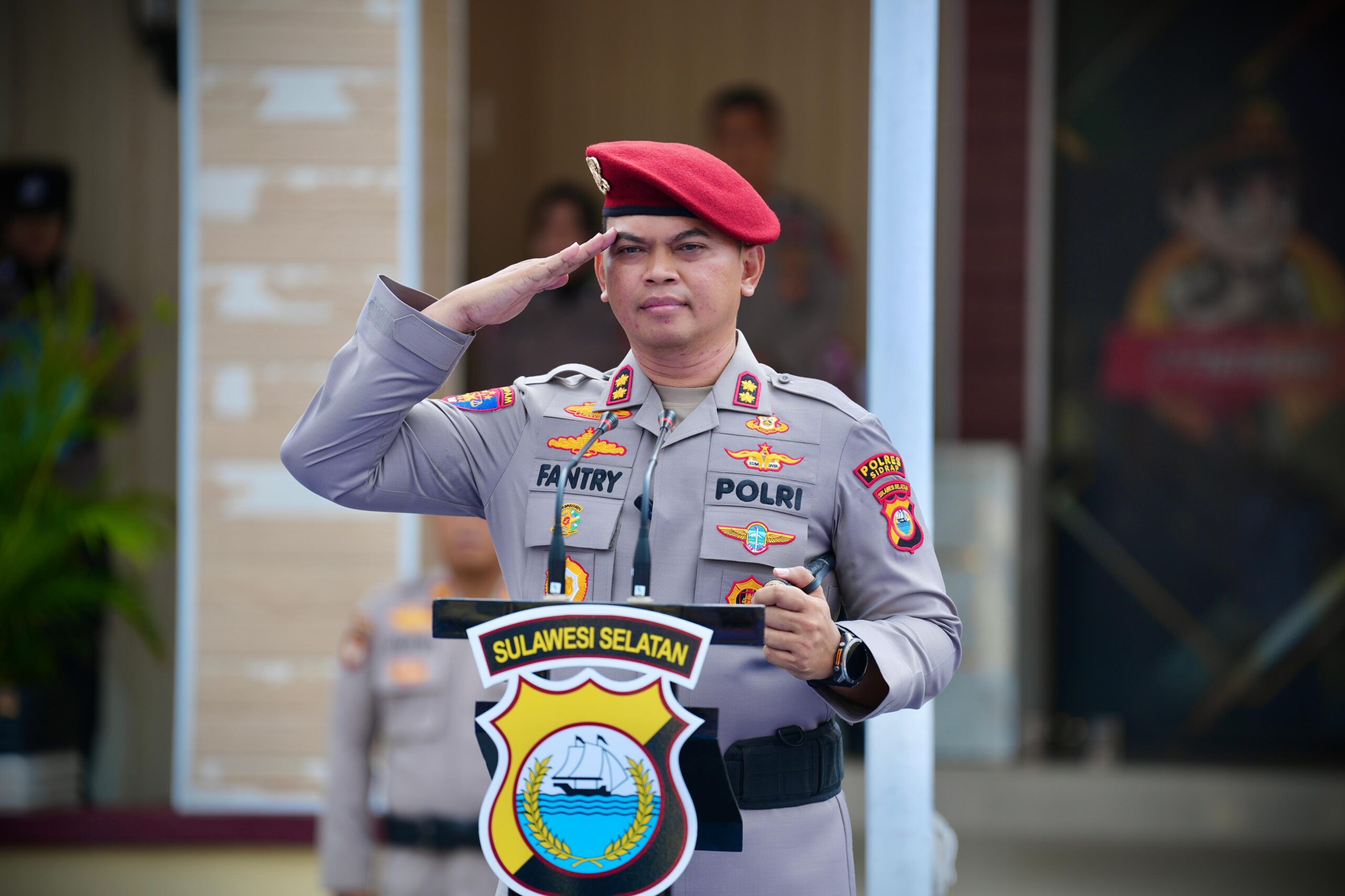 Sidrap – Kepala Kepolisian Resort Sidrap Akbp Fantry Taherong memimpin apel peringatan HUT Reskrim Polri ke 78 Tahun 2025. Kegiatan tersebut dirangkaikan dengan penyerahan penghargaan kepada personel Reskrim Polres Sidrap yang dinilai berprestasi dalam pengungkapan beberapa kasus menonjol yang terjadi di Wilayah Kabupaten Sidrap.