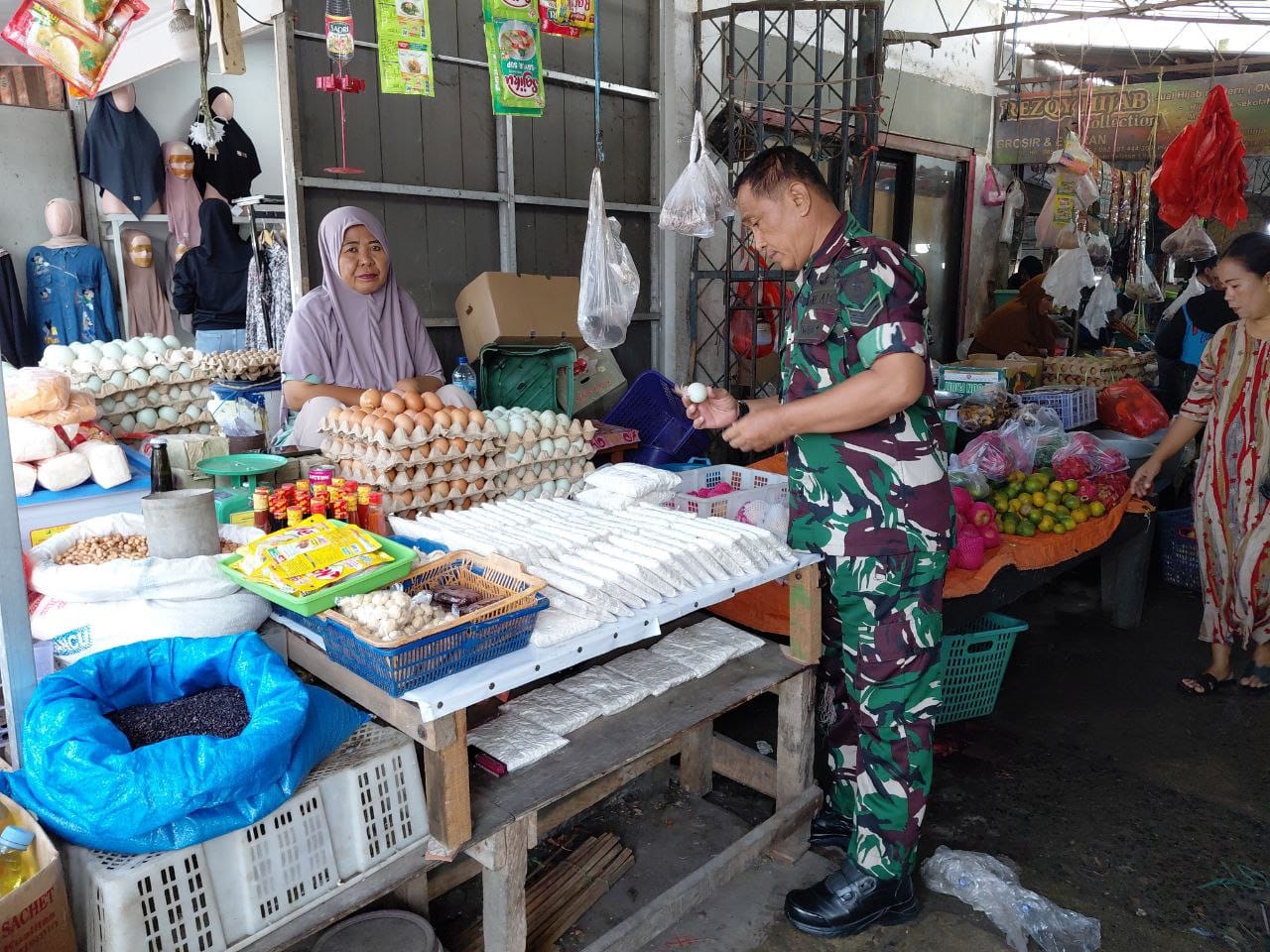 Kegiatan ini merupakan langkah proaktif TNI AD dalam mengawal ketahanan pangan dan mengantisipasi lonjakan harga yang kerap terjadi di periode pasca-lebaran. Dalam pantauannya, Sertu Sandy menyisir sejumlah lapak pedagang, mulai dari penjual beras, minyak goreng, telur, hingga bumbu dapur.