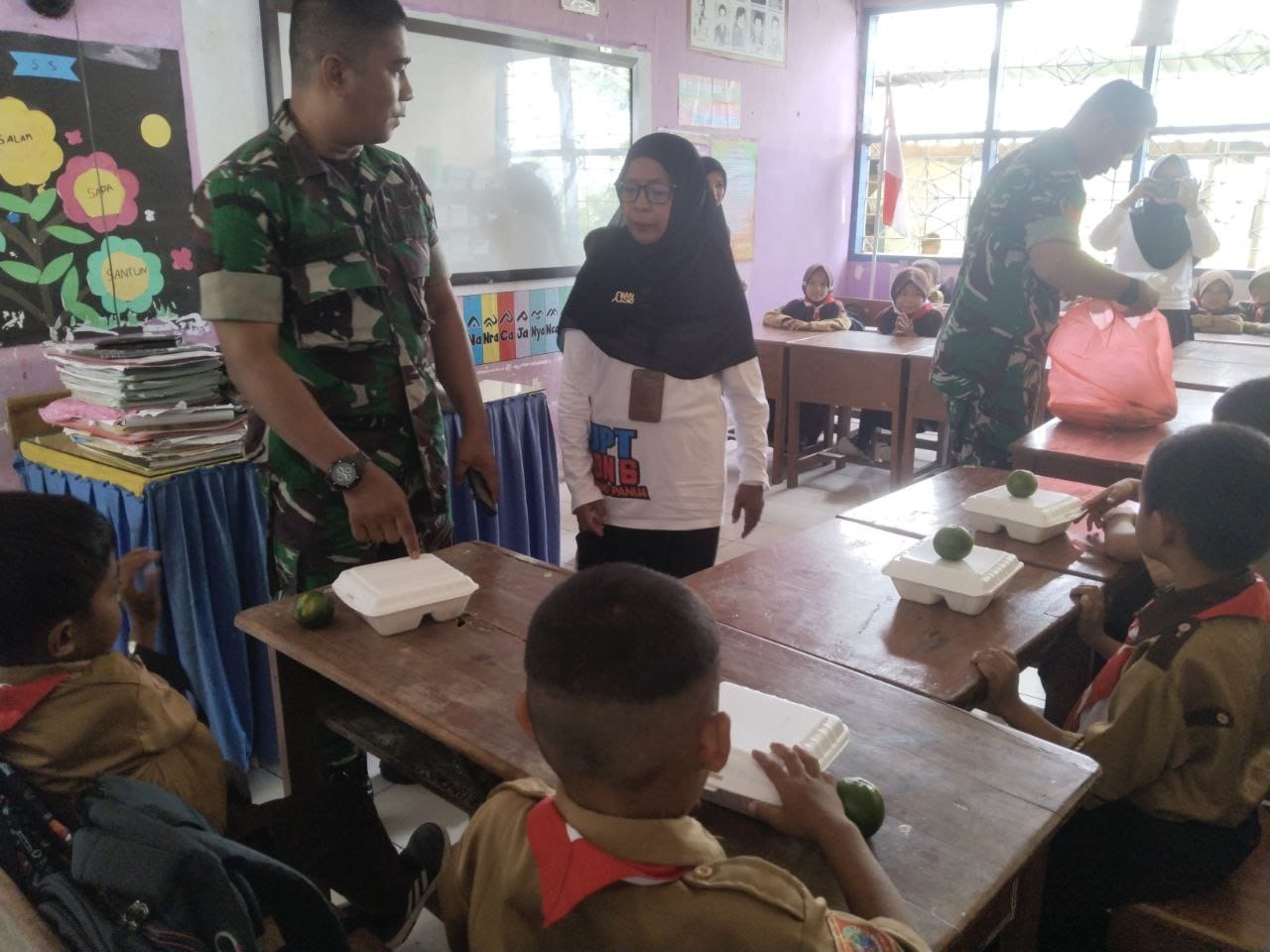 SIDRAP, SULSEL – Pelda Adhi Wrsita dari Kodim 1420/Sidrap memimpin kegiatan Akselerasi Dapur Satuan di SDN 6 Timoreng Panua, Desa Timoreng Panua, Kecamatan Panca Rijang, Kabupaten Sidrap, Kegiatan ini bertujuan untuk meningkatkan gizi anak-anak sekolah melalui penyediaan makanan bergizi. Jumat, 7 November 2025.